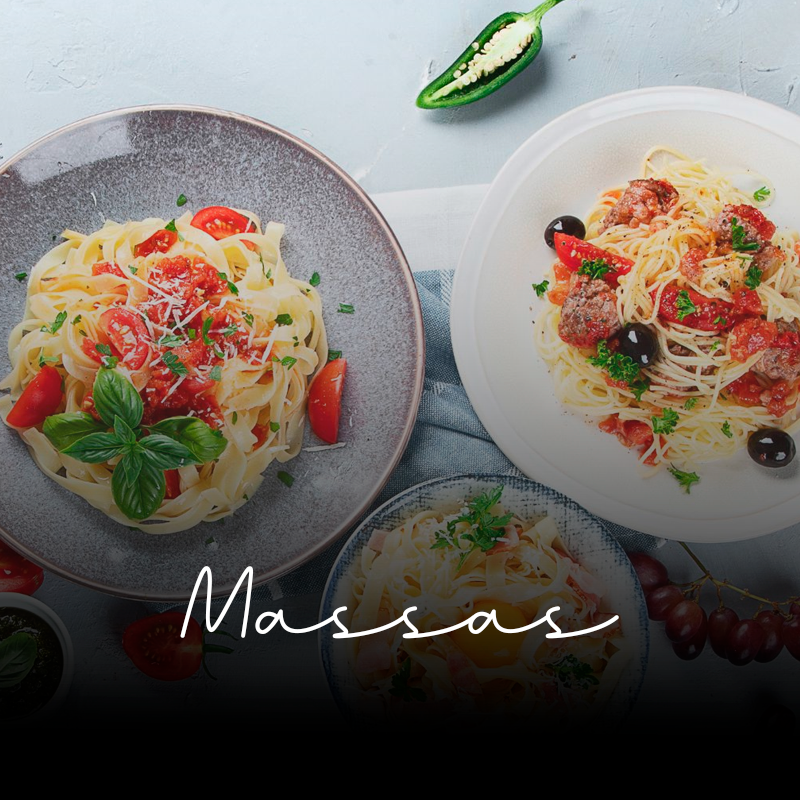 Nossa festa de massa conta conta com 4 estilos de massas diferentes e repleta de complementos especiais pra você incrementar seu prato. Além de uma entrada de mix de saladas e uma sobremesa especial